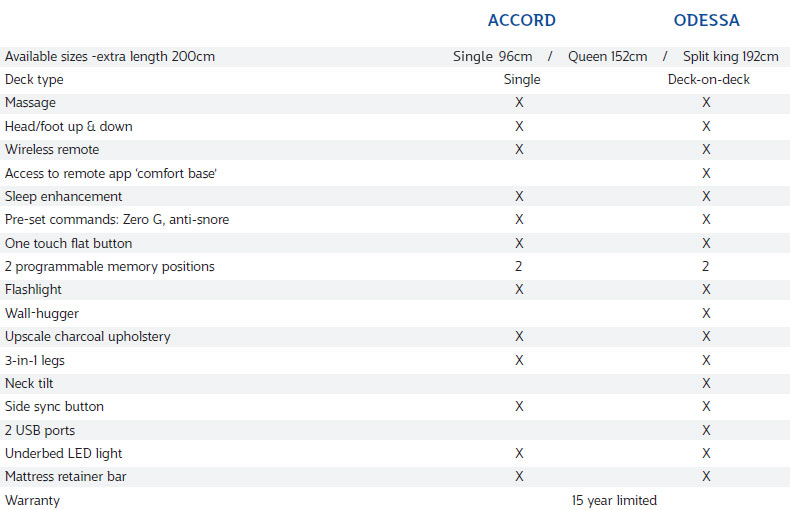 This range includes the Posturematic Odessa and Posturematic Accord Adjustable Power Base, each with their own unique advantages and levels of luxury.